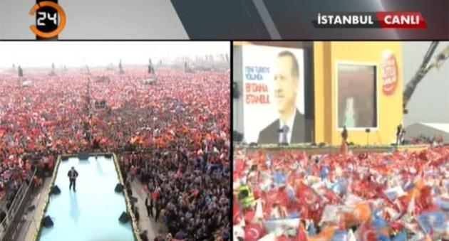 Bu görüntüler Başbakan Recep Tayyip Erdoğan miting alanına gelmeden önce çekildi.