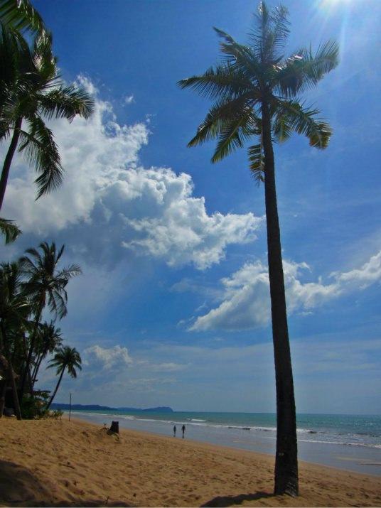 Khao Lak sahilinde palmiyelerin sahilin ve denizin ahenki görülmeye değer