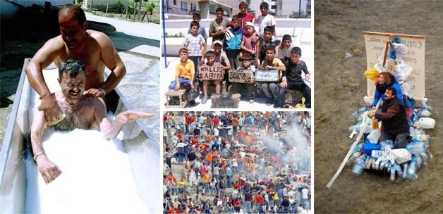Sıkıntılarının çözümüne çare arayan yurdum insanları zaman zaman ilginç eylemler düzenleyerek hem ilgililerin hemde medyanın ilgisini çekiyor. İşte o protestolar...