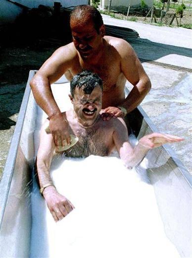 Süt üreticileri süt fiyatlarının düşürülmesini protesto etmek için süt banyosu yaptılar.