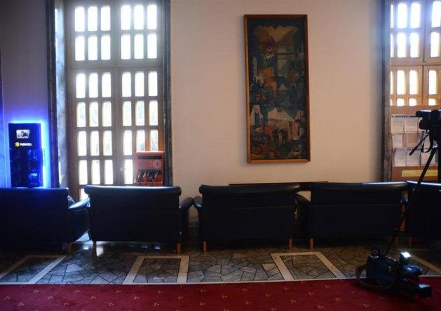 Kulislerdeki oturma grupları azaltılarak duvara yaslandı. Burada bulunan masalar da kaldırıldı.