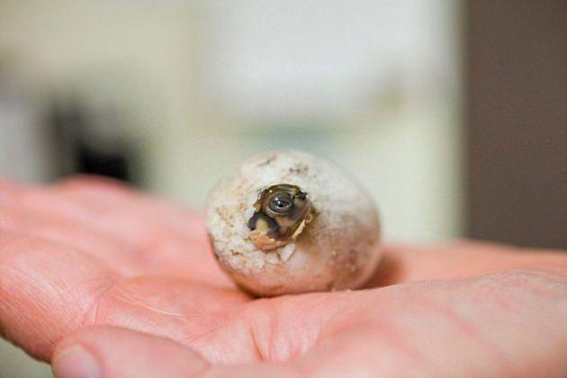 Nadir bulunan ve sayıları hızla azalan Amazon nehir kaplumbağası, avuç içinde yumurtasından çıktı. Kaplumbağanın yumurtadan çıkış anı ilginç bir görüntü oluşturdu.