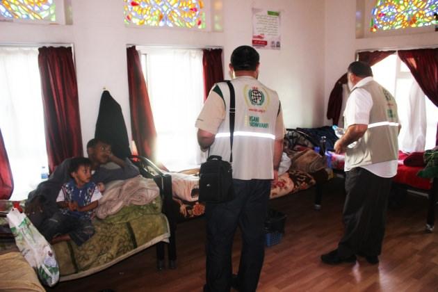 Çocuklarıyla bu kurumda kalan anne veya babalar... İHH ekibi hastalarla tek tek ilgilendi, çocuklara hediyeler verdi.