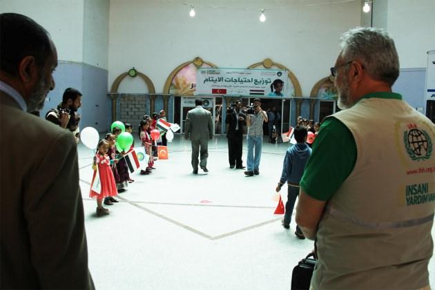 iHH Yemen ekibini ilk olarak bir elinde Türk ve Yemen bayraklarını sallayan, diğer elinde ise balonlar olan güler yüzlü yetim çocuklar karşıladı.