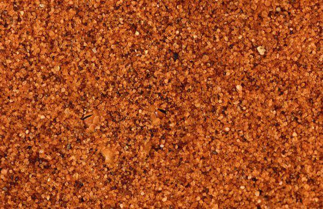 Nambiya'da kum tanelerin arasında gözüken yılan gözleri.