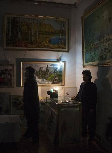 Pyongyang'da sanat galerisi gezerken elektrikler kesildi. Böyle durumlarda bunun Ameirkan ambargosu yüzünden olduğunu söylüyorlar.