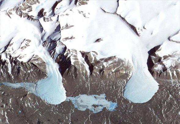 Antartika'da The Dry Vadisi buzullara ve buzul göllerine ev sahipliği yapıyor. Fotoğraf 2000 yılında ASTER uydusundan çekildi.