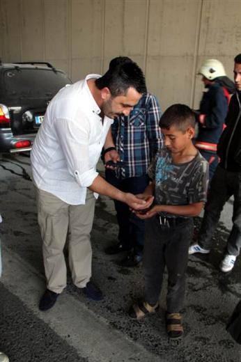 Yanan aracı bakın neyle söndürdü