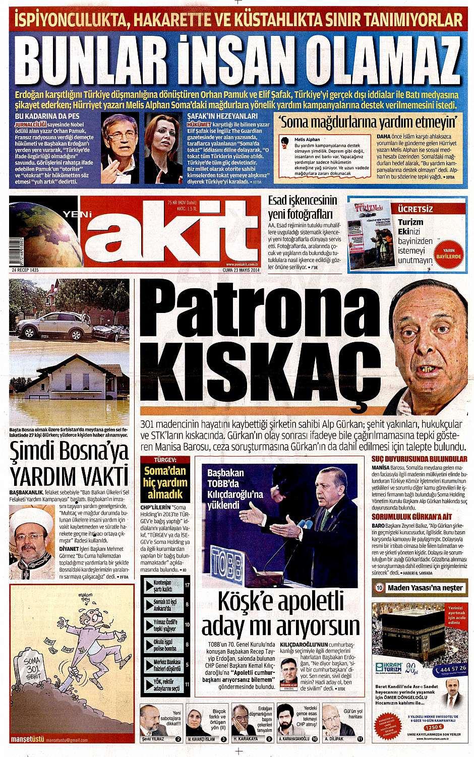 23 Mayıs 2014 gazete manşetleri