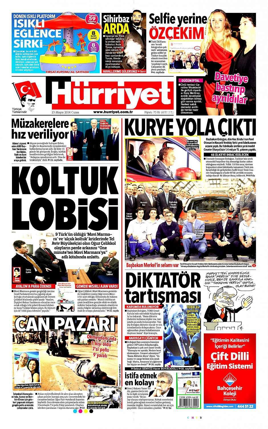 23 Mayıs 2014 gazete manşetleri