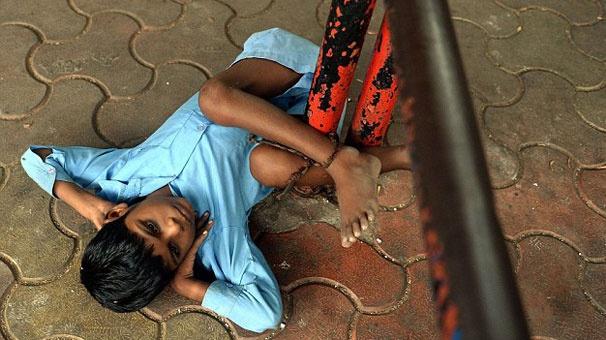 Engelli küçük çocuk tüm gün otobüs durağında ayağından zincirlenmiş halde bekliyor. Şoke eden görüntünün sebebi ise 9 yaşındaki çocuğun büyükannesi.
