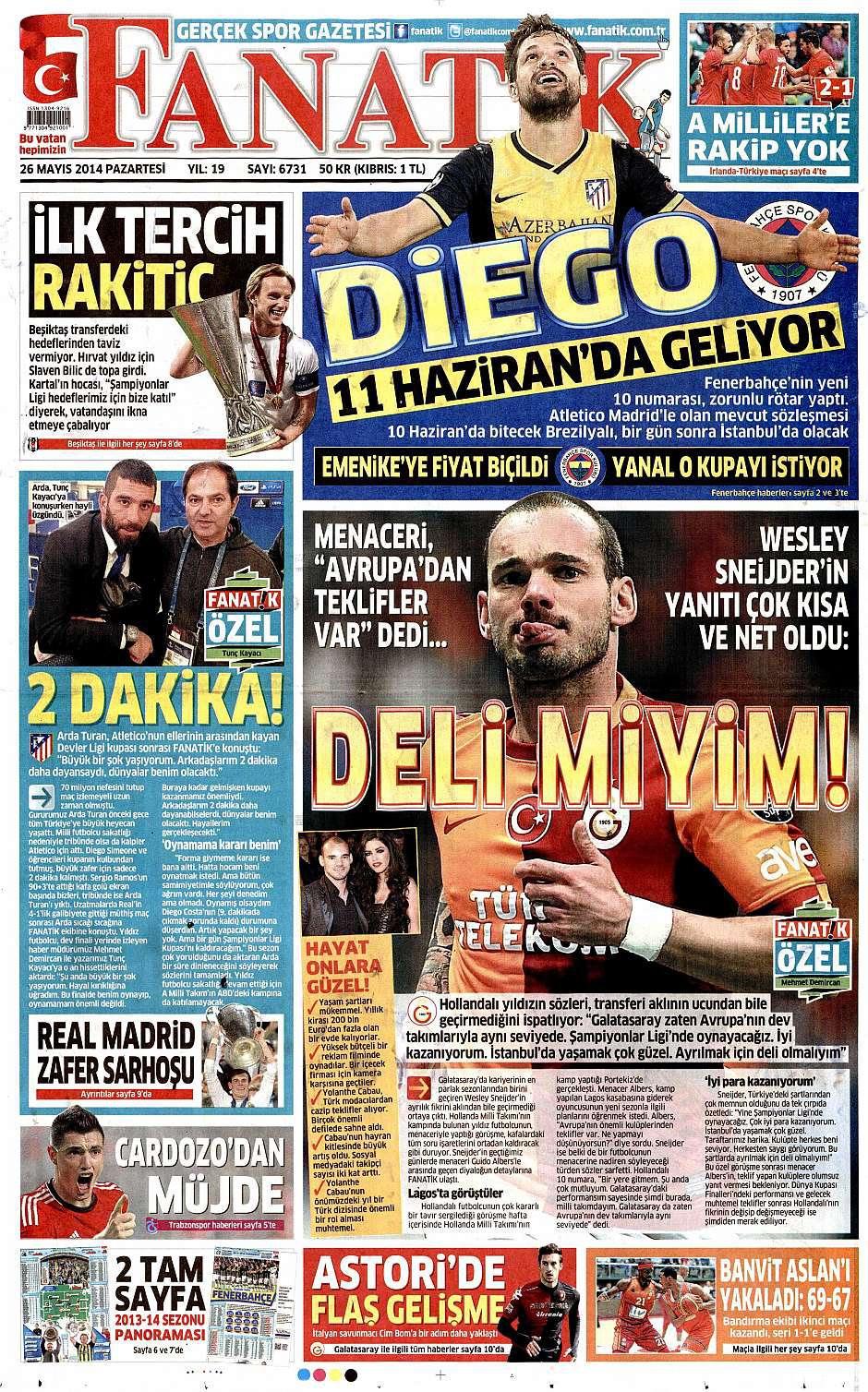 26 Mayıs 2014 gazete manşetleri