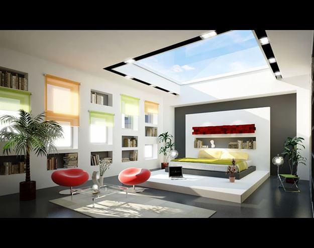 Tavanı cam bir yatak odası