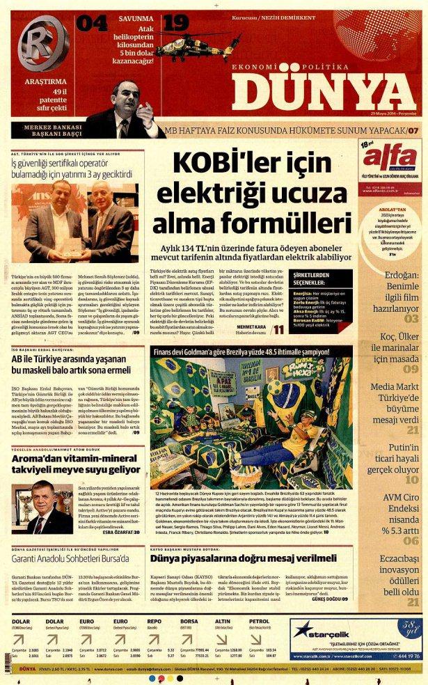 29 Mayıs 2014 gazete manşetleri