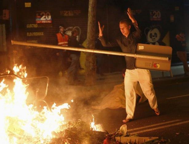 Barışçıl başlayan gösteriler gece geç saatlerde şiddet olaylarına dönüştü. Katalan polisi, çöp konteynerlerini ateşe veren ve banka şubelerine zarar veren 23 kişinin gözaltına alındığını duyurdu.
