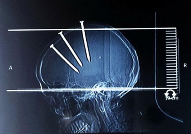 Çivilerin başları açıkça dışarıdan bile görünürken doktorlar Çinli adamın röntgenini çekti ve 3 koca çivi ile karşılaştı...
