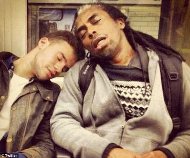 Uykuya yenik düşen bu insanlar, yolculuk yapan diğer yolcular tarafından fotoğraflananınca, ortaya bu görüntüler çıktı.