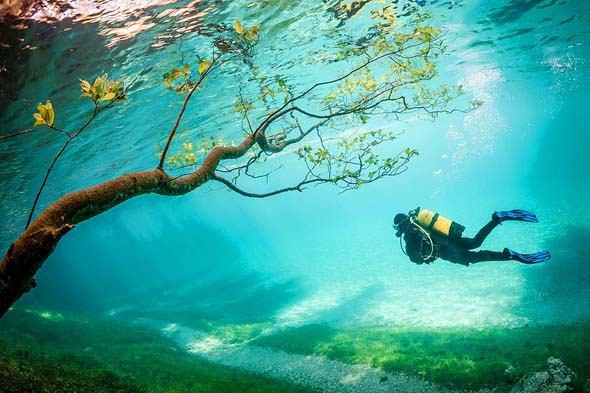 Green Lake (Grüner See) Tragöß, Avusturya bulunur. Bahar aylarında karların erimesi sonucu göl 10 metre kadar yükselir ve yanında bulunan ağaçları, patikaları ve çayırları birkaç haftalığına yutar. Bu büyülü doğa olayı yaşanırken dalış yapmak ise rüyalar ülkesine dalmak gibi bir şeydir. Marc Henauer
