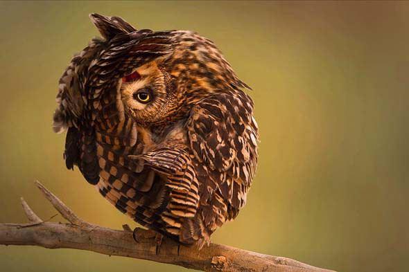 Kuveyt'te bir doğal yaşam parkında gerinen kısa kulaklı baykuş. Mohd Khorshid