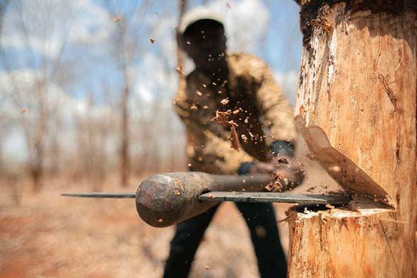 Bir Makua ailesi için yakacak odun toplamak üzere ormana giriyor. Chitimba, Cabo Delgado, Mozambik. Rafael Hernandez