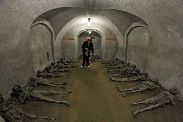 Sıra sıra yatan mumyaların arasında her gün temizlik yapan kadın çalışan ise ziyaretçiler tarafından soru yağmuruna tutuluyor.