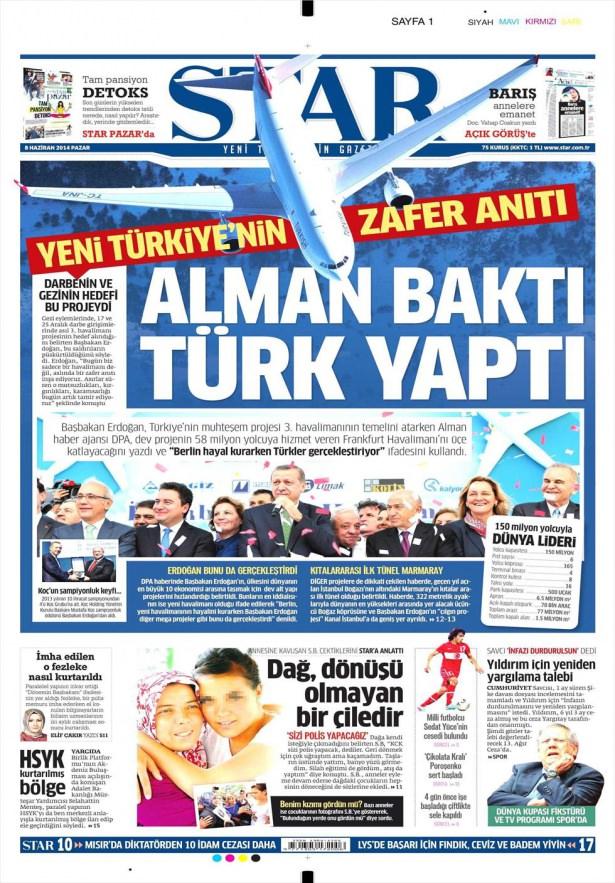 8 Haziran 2014 gazete manşetleri