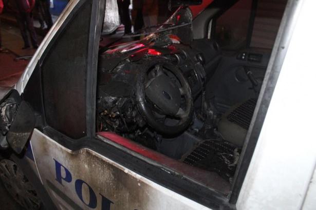 Göstericiler polis aracını ateşe verdi