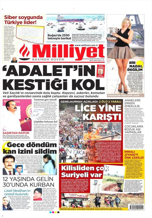 9 Haziran 2014 gazete manşetleri