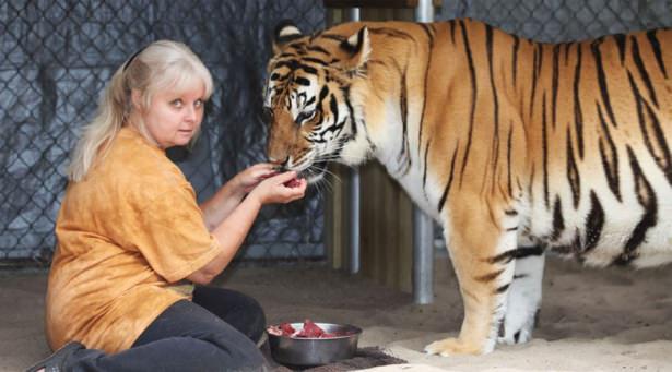 57 yaşındaki kaplan bakıcısı Janice Haley'in kaplanlarla olan yakınlığı insanları şaşırtıyor. Günde 3 kez kaplanları besleyen Haley onları çok sevdiğini ve elleriyle beslediğini söylüyor.