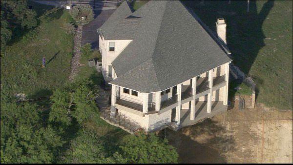 Helikopter kamerasıyla kaydedilen görüntülerde uçurumun kenarındaki evin toprak kayması nedeniyle yarısının havada kaldığı görünüyor.