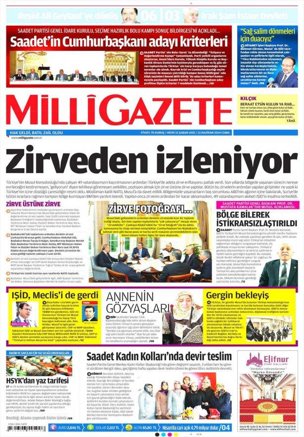 13 Haziran 2014 gazete manşetleri