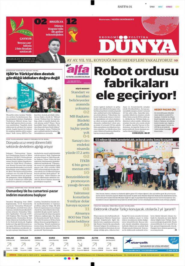15 Haziran 2014 gazete manşetleri