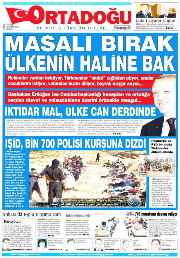 16 Haziran 2014 gazete manşetleri