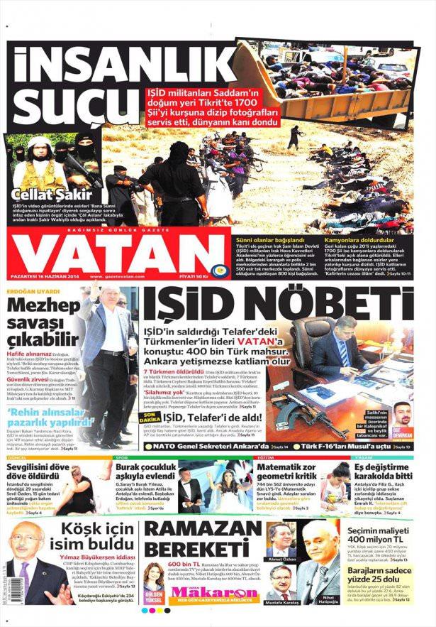 16 Haziran 2014 gazete manşetleri