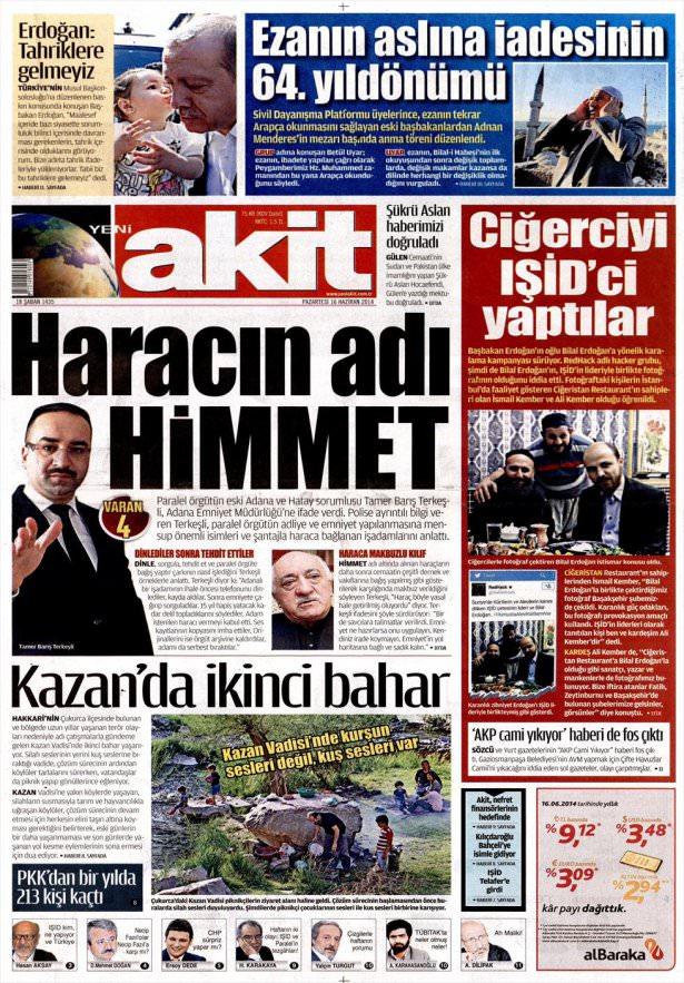 16 Haziran 2014 gazete manşetleri