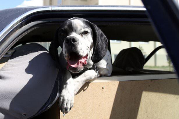 Otomobilin arka koltuğuna tahtadan yaptığı kulübede köpeğini besleyen hayvansever, av köpeğinin yiyecek ihtiyacını mahallede toplanan kuru ekmek ve yemek artıklarından karşılıyor.