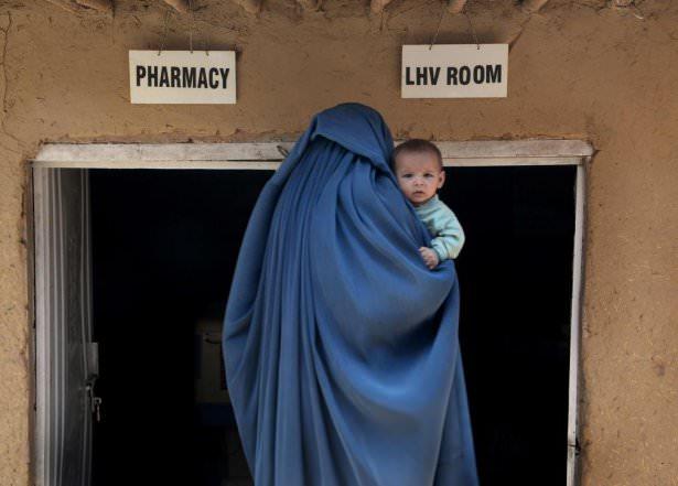 Afgan mülteci kadın, hasta çocuğunu İslamabad'a kurulmuş özel sağlık kampına getirmiş. Kamp BM ile Pakistan ortaklığında kurulmuş.