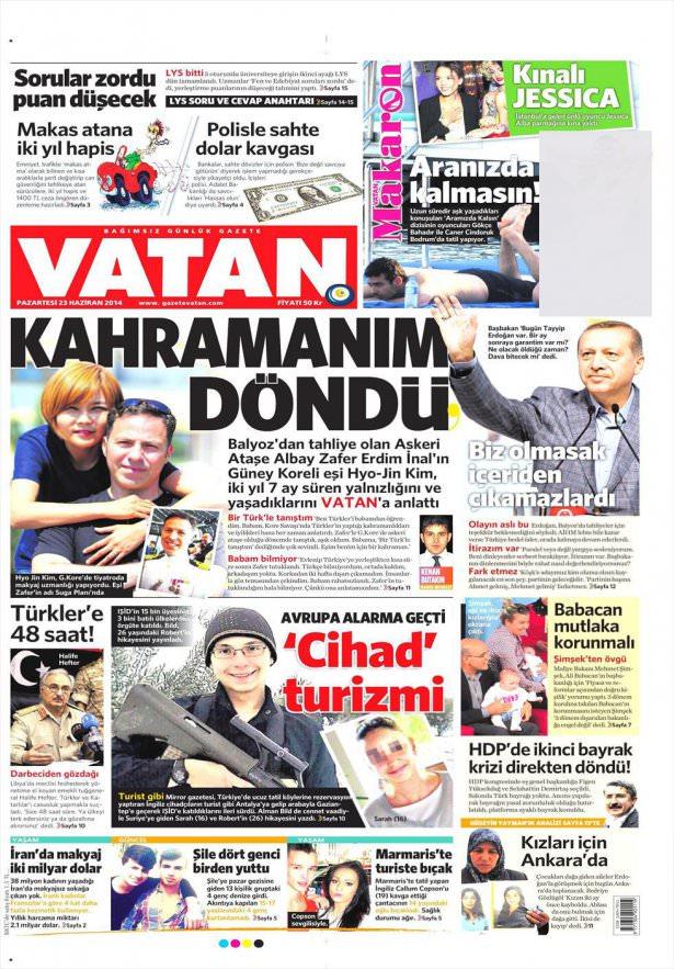 23 Haziran 2014 gazete manşetleri