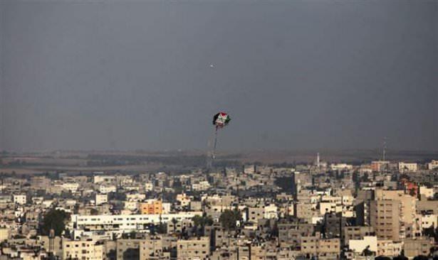 İsrail'in düzenlediği hava saldırısından sonra Filistin bayrağı renklerinde uçurtma uçurulduğu görüldü.