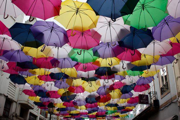 Portekiz'de gerçekleştirilen "Agitagueda Art Festival" kapsamında Agueda kentinin pek çok yeri rengarenk şemsiyelerle dekore edilmiş. İşte birbirinden renkli fotoğraflar ile Portekiz sokakları...