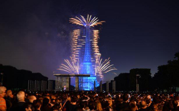 Fransa'nın "14 Temmuz Ulusal Günü" nedeniyle başkent Paris'in simgelerinden Eiffel kulesi’nde havai fişek gösterisi yapıldı.