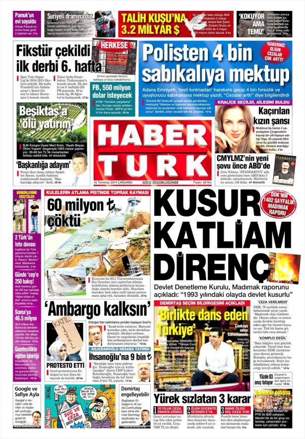 16 Temmuz 2014 gazete manşetleri