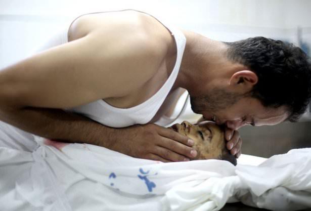 Saldırılarda küçük çocuğunu kaybeden bir babanın oğlunu son kez öptüğü kare ise Gazze'deki trajediyi gözler önüne seren cinstendi.