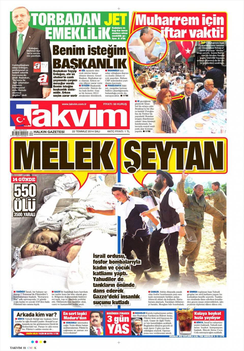 22 Temmuz 2014 gazete manşetleri
