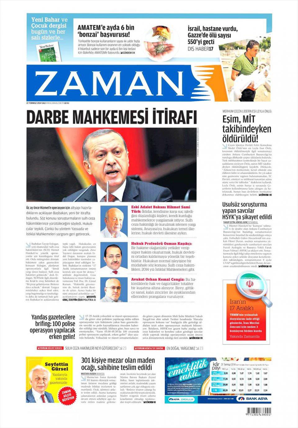 22 Temmuz 2014 gazete manşetleri