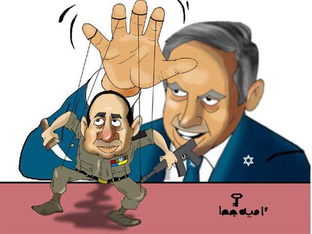 Mısır'da Cunta yönetiminin lideri Sisi Netanyahu'nun kuklası olarak çizilmiş.