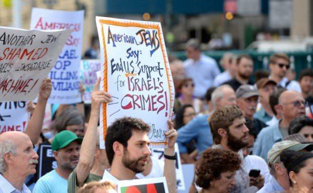 Washington'da ise Dışişleri Bakanlığı önünde, ellerindeki Filistin bayraklarıyla toplanan protestocular...