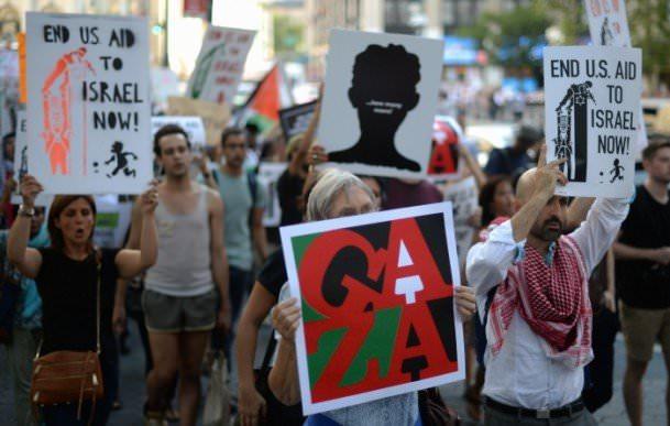 “Özgür Filistin”, “Gazze’ye ablukayı sona erdirin”, “Bebek katili İsrail” yazılı dövizler taşıdı.