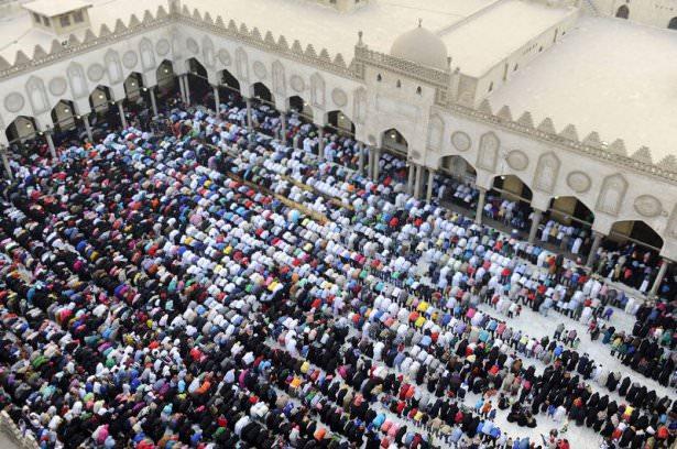 Ramazan Bayramı'nın gelmesiyle birlikte Mısır'ın başkenti Kahire'de yaşayan müslümanlar, El Ezher Camii'nde bayram namazı kıldı.