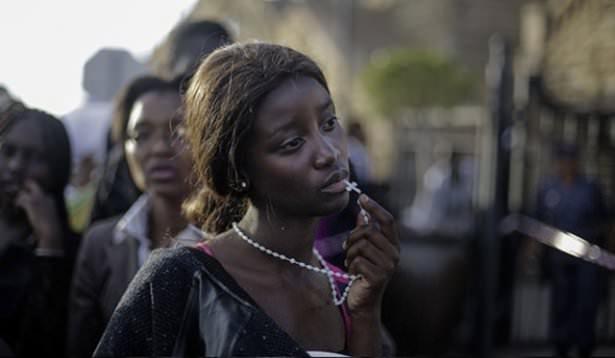 13 Aralık günü, Güney Afrika'nın eski devlet başkanı Nelson Mandela'nın katafalkının başkent Pretoria'daki Birlik Binası'nda (Devlet Başkanlığı Sarayı) teşhir edilişinin üçüncü ve son gününden hayal kırıklığıyla ayrılan bir kadın.